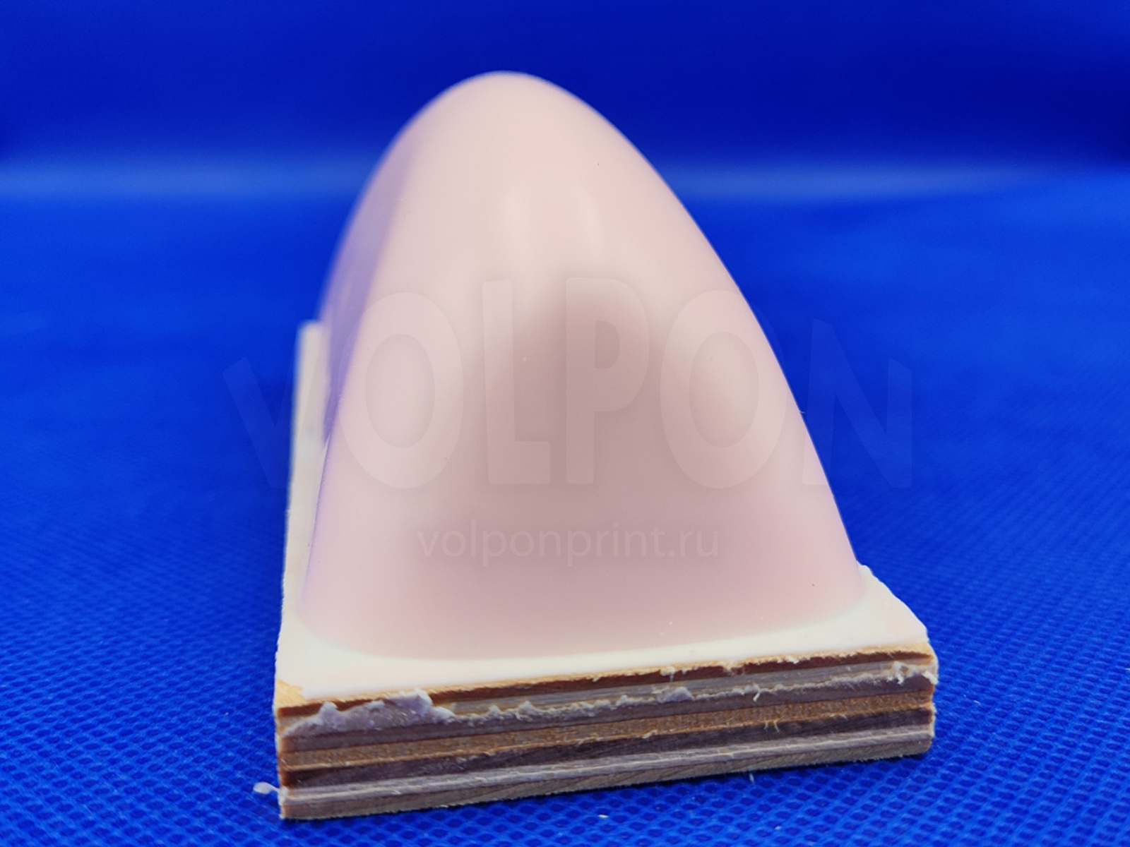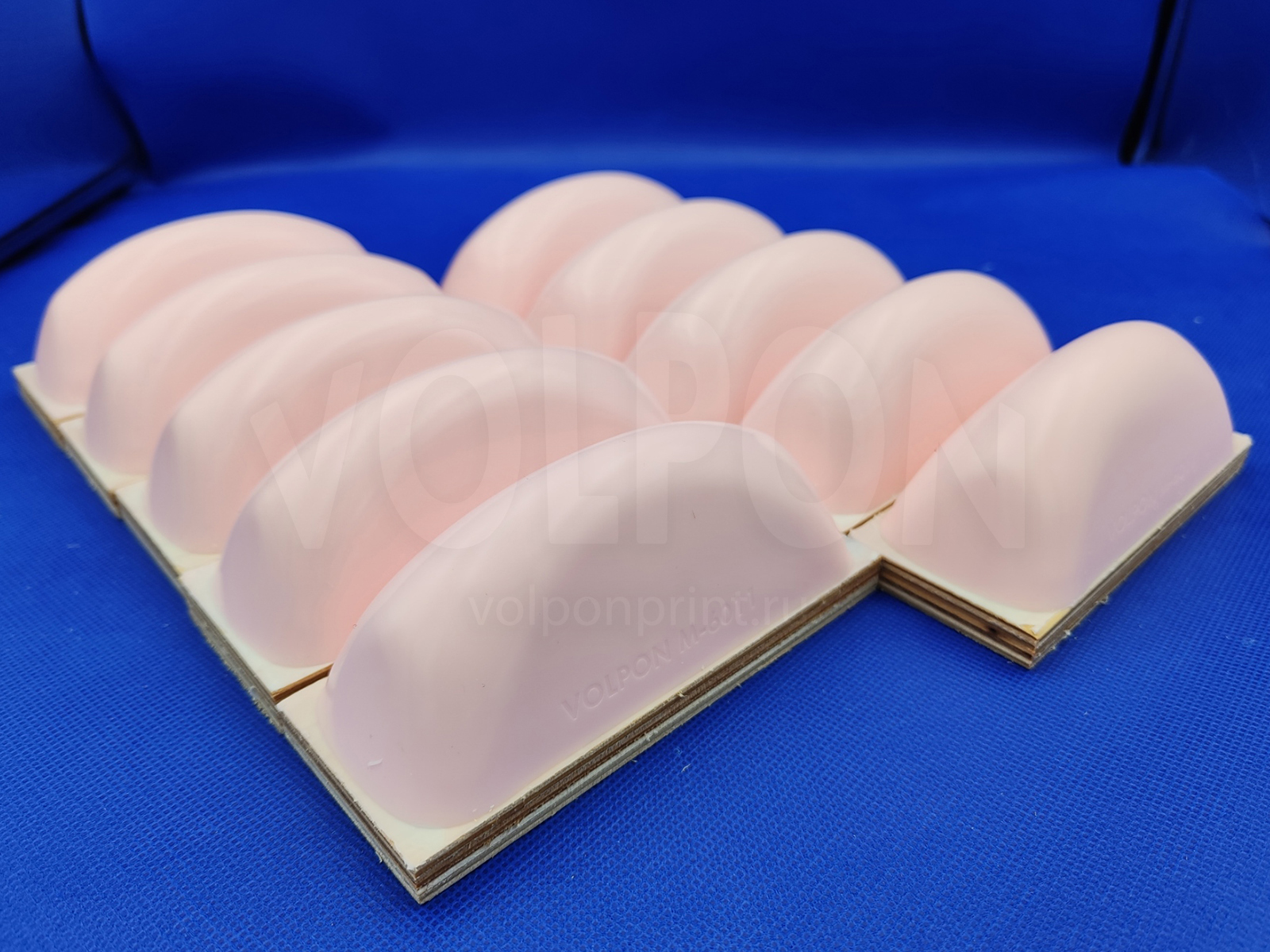 Форма тампона рассчитана для печати на циллиндрических поверхностях с маленьким диаметром: ручки, карандаши, ампулы, брелки, косметические тестеры и д.р.